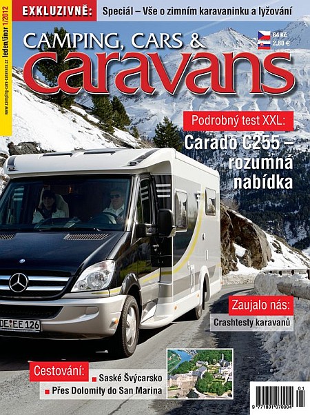 První letošní vydání časopisu Camping, Cars & Caravans je již v prodeji a svým čtenářům nabízí 88 stran plných kvalitního čtení. Nosným tématem čísla je zimní karavanink – najdete zde bohaté informace a praktické zkušenosti o přípravě obytného vozidla či karavanu na zimu, tipy jak si užít zimní kempování a kam vyrazit na lyže. Pomohou Vám také podrobné obrázkové návody na instalaci izolačních žaluzií do Fiatu Ducato, pomocné topné spirály Truma Ultraheat nebo topného koberce. V podrobném testu jsme se podívali na zoubek karavanu Carado C255 a završili půlroční testování vestavby La Strada Regent S. Na výlet Vás vezmeme do Saského Švýcarska, kde Vám ukážeme deset vhodných karavanových stání, s našimi čtenáři se projedeme s obytnou vestavbou přes Dolomity do San Marina a podíváme se také na vánoční trhy do Budapešti. A to zdaleka není vše!
