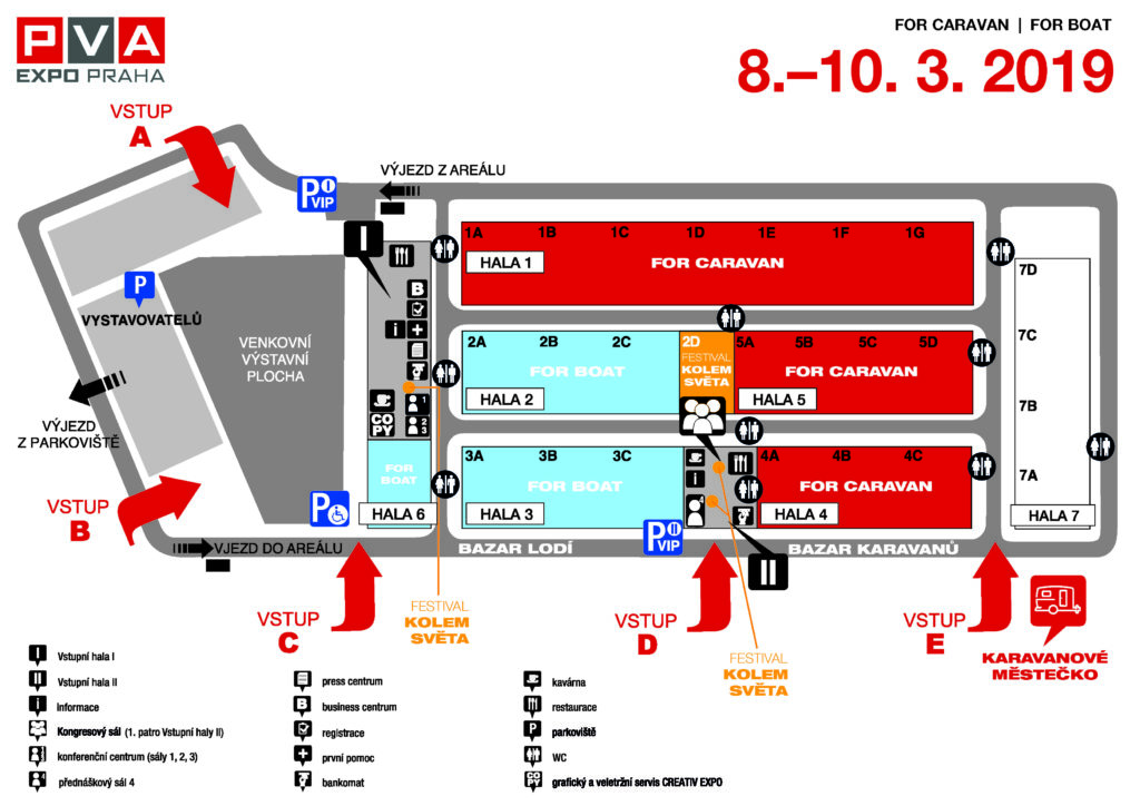 Páteční odpoledne bude patřit všem karavanistům. Známá propagátorka kempování a karavaninku Klára Hájek Velinská připravuje blok přednášek. Tématy budou etiketa kempování, krásy Polska nebo kempování v zimě. V sobotu a v neděli se uskuteční oblíbený cestovatelský festival Kolem světa. O své zkušenosti a zážitky z cest po celém světě se podělí známí i méně známí cestovatelé. Své příběhy si pro sebe nenechá třeba známý cestovatel Jiří Kolbaba. Ani letos nebude chybět unikátní výstava retro karavanů, kterou připravuje Autoklub České republiky.