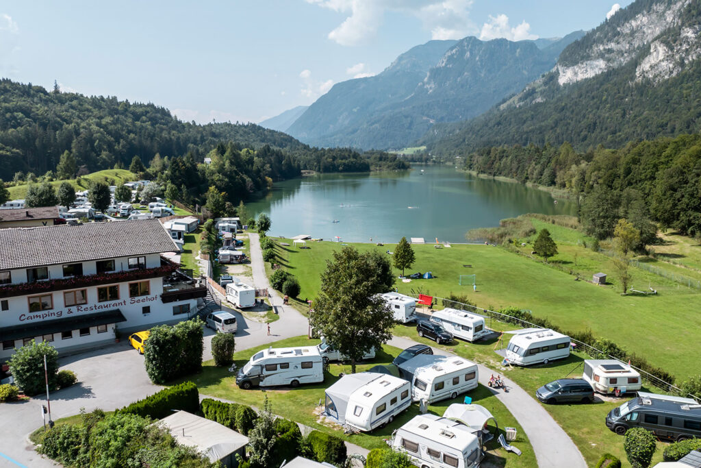Nedaleko břehu jezera se vzduchem line vůně čerstvého pečiva. Kemp Camping & Appartements Seehof provozuje vlastní snídaňový kiosek. Pětihvězdičkový areál se nachází na východním břehu jezera Reintalersee. Zaujme terasovitými travnatými kempovacími parcelami, velkorysým vybavením a panoramatickým výhledem. Zábavu zajišťuje dětská zoo, dobrodružné hřiště s motokárami a krytá herna. Rodiče si mezitím mohou vychutnat kávu a dort na terase u jezera. Večer láká hosty k posezení pizzerie nebo pohodové místo s grilem. Tři moderní sanitární zařízení, soukromé koupelny k pronájmu, jezdecký areál a fitness centrum doplňují lákavou nabídku kempu. V zimě se kemp proměňuje v běžkařskou základnu s přímým přístupem na upravené tratě.