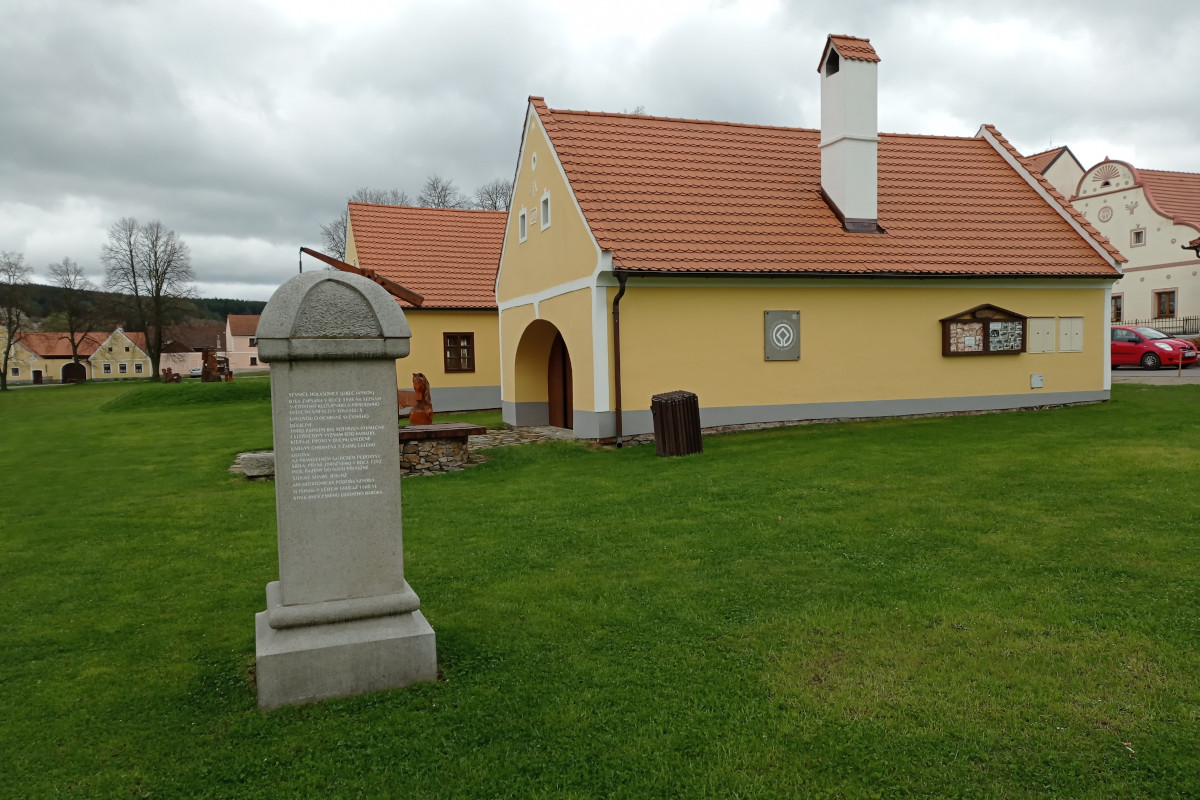 Dlužno podotknout, že v průběhu naší návštěvy, která proběhla na přelomu dubna a května, bylo v celé vesnici otevřeno pouze výdejní okénko hostince. Za nepříliš vlídného počasí jsme se tedy museli spokojit alespoň s malým občerstvením a procházkou po návsi, v jejímž středu je malý rybník, střežený dřevěnou sochou vodníka. Pozitivním detailem pro všechny, kdo do Holašovic přicestují obytňákem, je prostorné parkoviště, nacházející se zhruba 200 metrů od návsi.