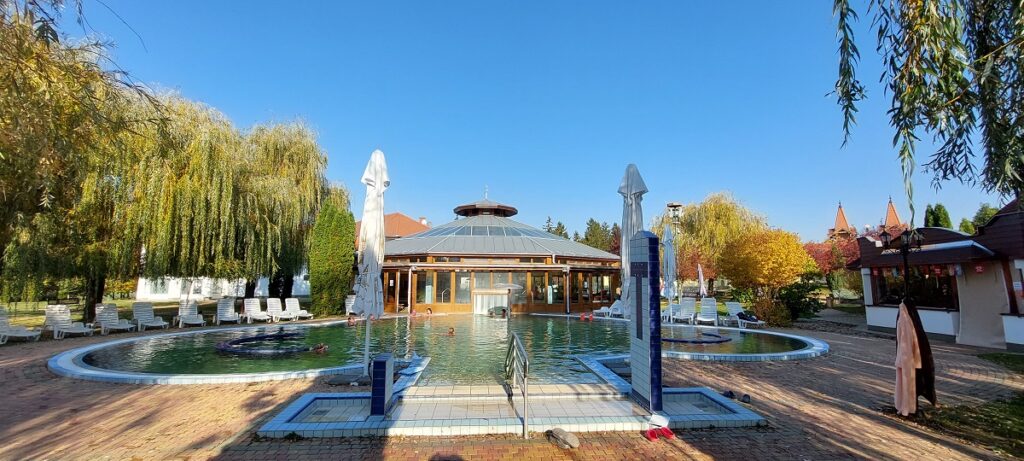 Rozhodnutí uspořádat toto setkání v termálních lázních v obci Pusztászentlászló asi 30 km od Zalaegerszegu bylo dle ohlasů účastníků správné. Jedná se o privátní termální lázně s kempem, které vedou dcera s matkou a mohu říci, že dobře. Kemp je rozdělen živými ploty na 54 parcel, každá má svoji vlastní přípojku na elektřinu a vodu. Nové společné sociální zařízení, jehož součástí byla i odstředivka, bylo neustále pod kontrolou personálu a bylo vždy čisté s dostatkem hygienických potřeb. Další objekt sloužil pro přípravu jídel a mytí nádobí. S termálními lázněmi je kemp oddělen plotem s brankou, přes kterou jsme měli neomezený vstup do bazénů. Když píšu neomezený, tak opravdu neomezený, tedy 24 hodin denně.