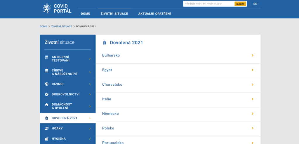 Představil i některé novinky včetně webu Dovolena2021.cz, který je součástí Covid portálu a nabízí přehledné a jednoduché informace o cestování do 14 nejnavštěvovanějších turistických destinací. „Pro každou zemi existují různá omezení pro různé skupiny lidí a informací je opravdu obrovská spousta – od podmínek, jak se do země dá vycestovat, až po situace, které mohou nastat, třeba postup v případě, že se někdo v zemi nakazí a musí do karantény. Nový web je přesně tím místem, kde se lidé mohou přehledně informovat o cestování do destinací, které jsou podle našich údajů mezi Čechy nejpopulárnější,“ doplnil ministr.